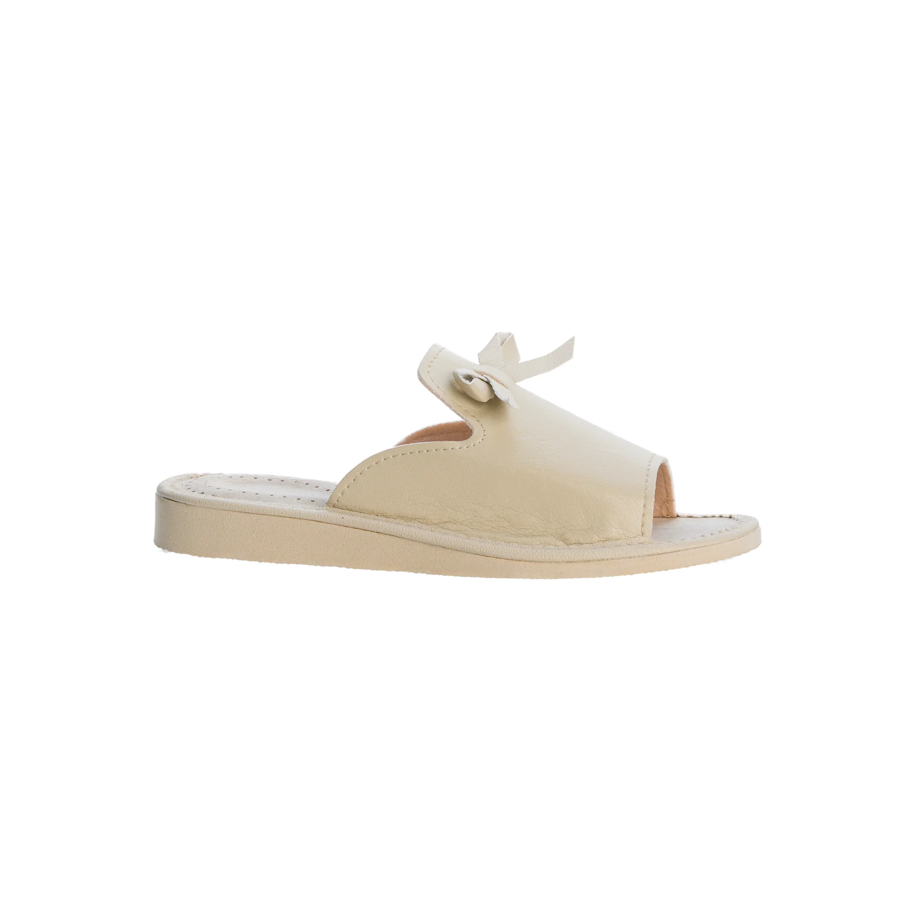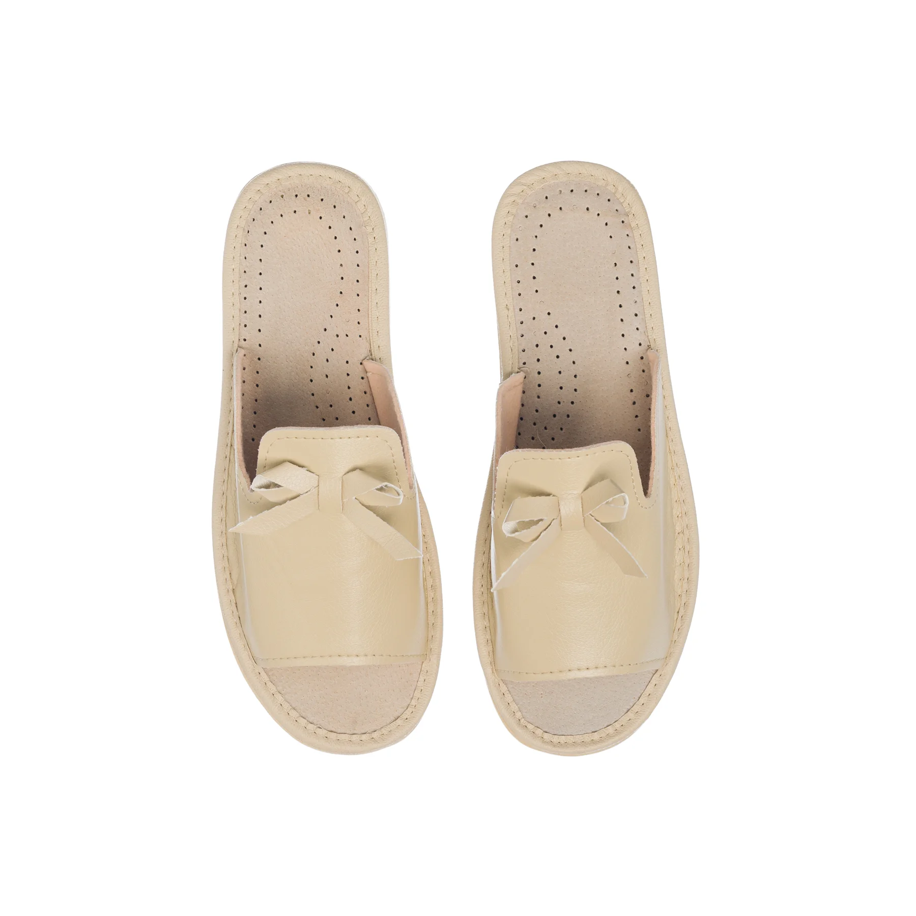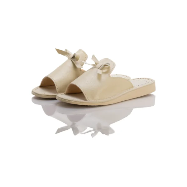 Damskie Pantofle – Beżowe kapcie z kokardą