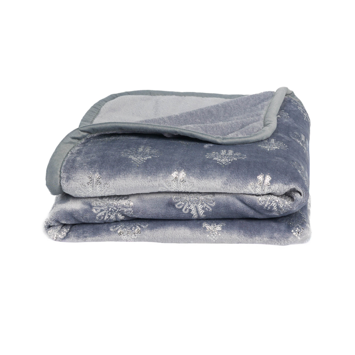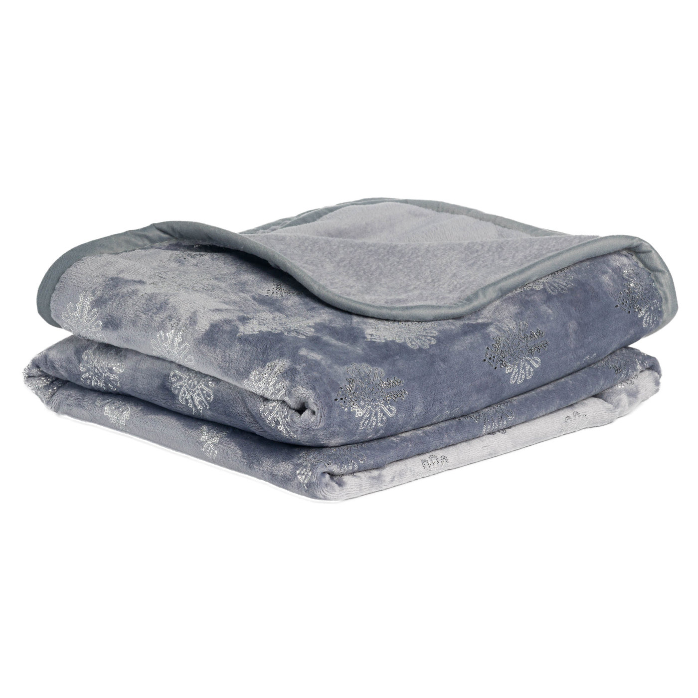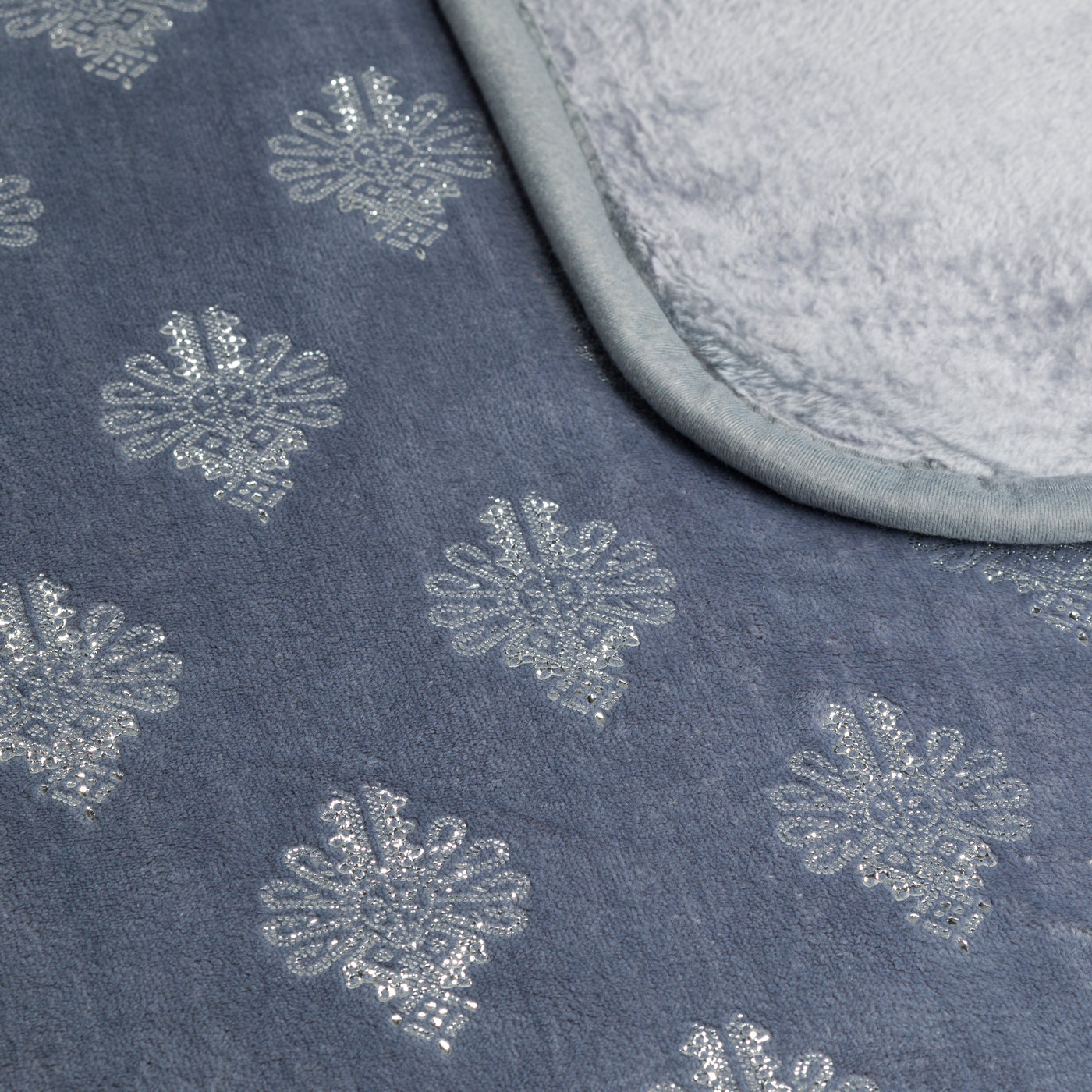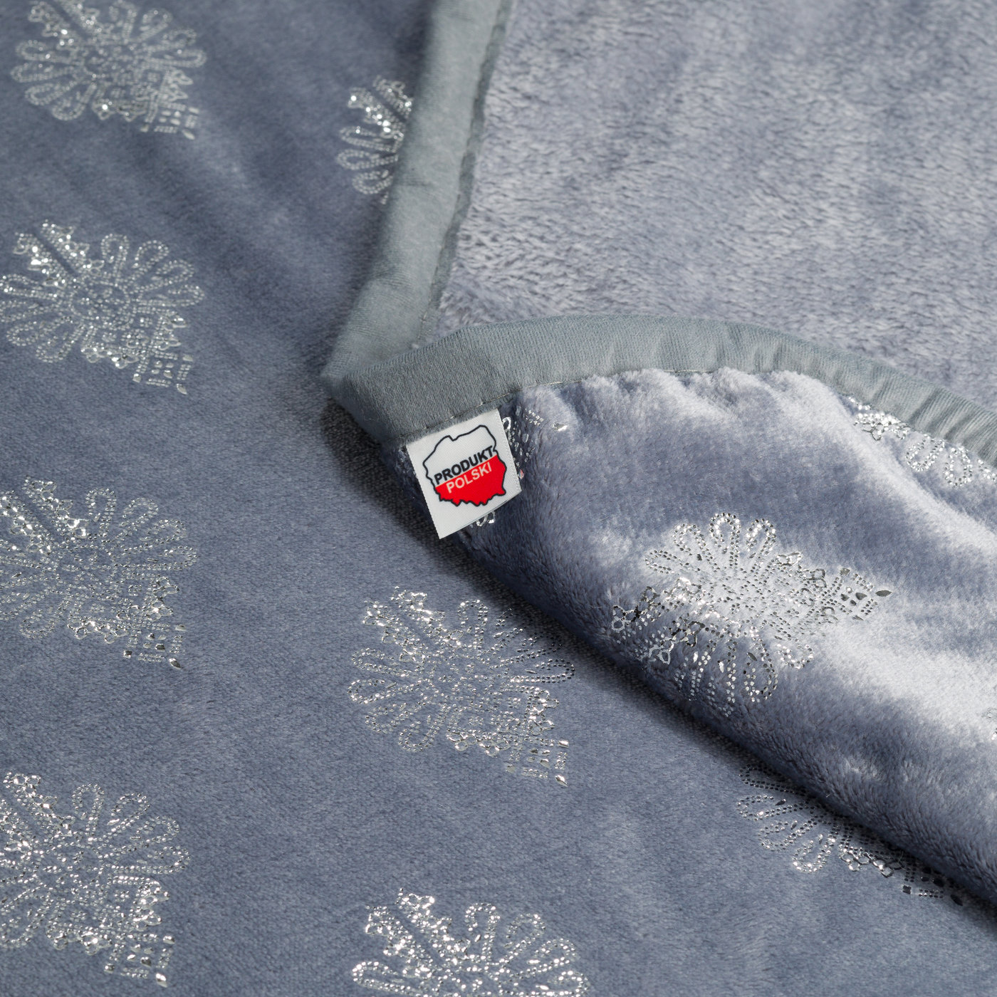 Szary to kolor uniwersalny i ponadczasowy – pasuje do większości wnętrz, od minimalistycznych po klasyczne. Odcień blue-gray (szaro-niebieski) jest cieplejszy niż zimna stalowa szarość, działa uspokajająco. Srebrne parzenice lśnią przy świetle – subtelny blask, nie przesadny. Szare wykończenie brzegu spina całość – koc wygląda spójnie i elegancko.