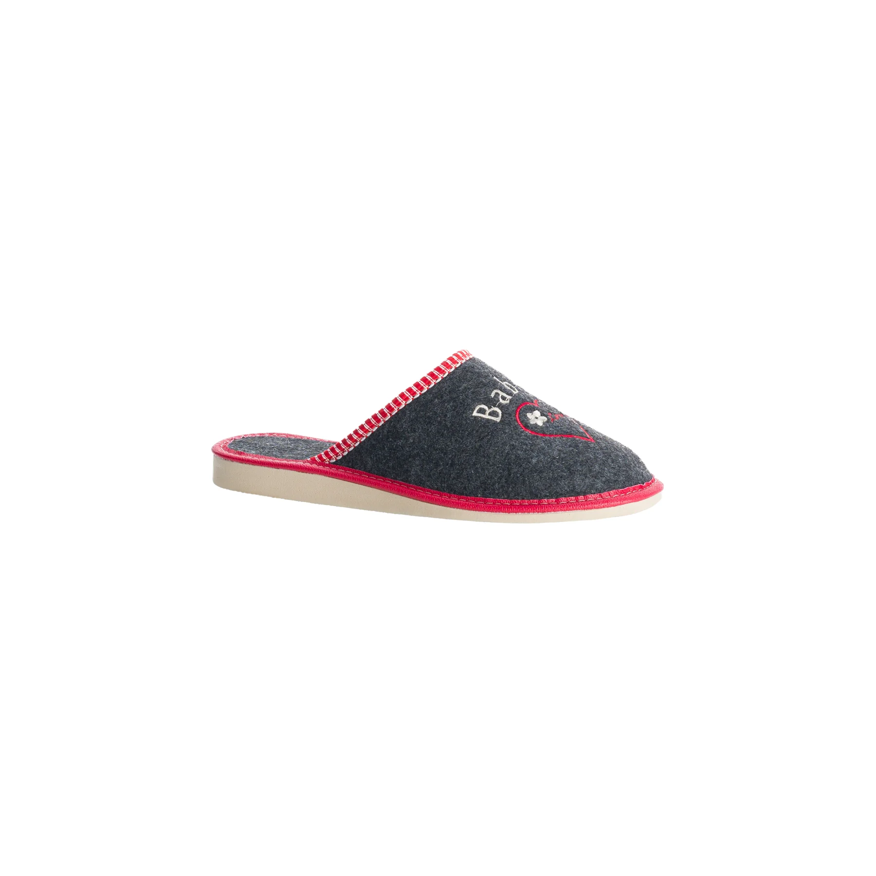Pantofle Damskie – „Babcia” Kapcie Filcowe w szarym kolorze z czerwonymi akcentami