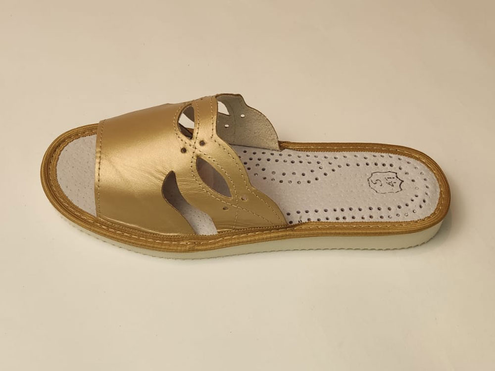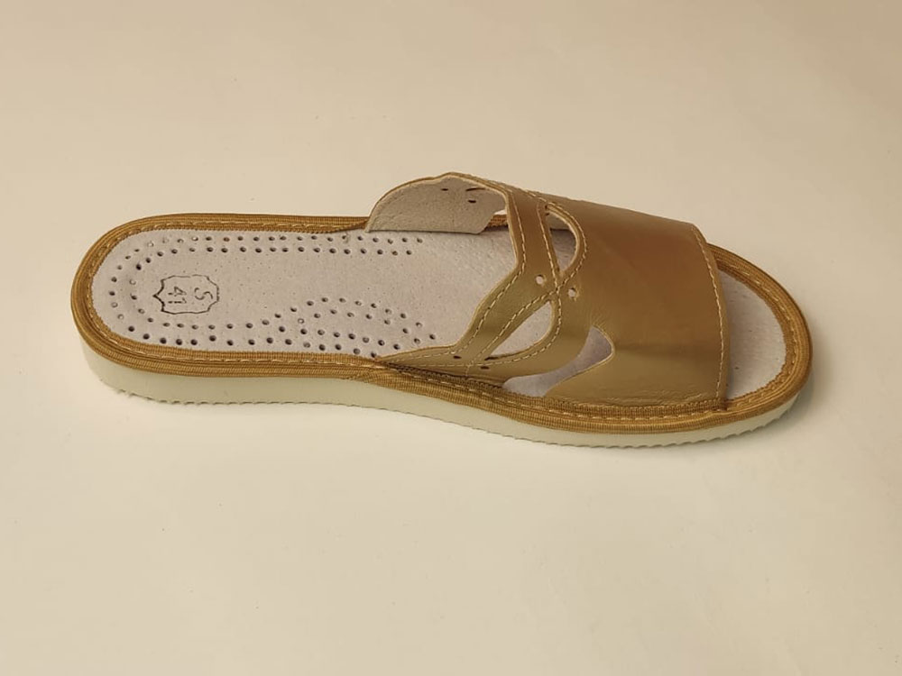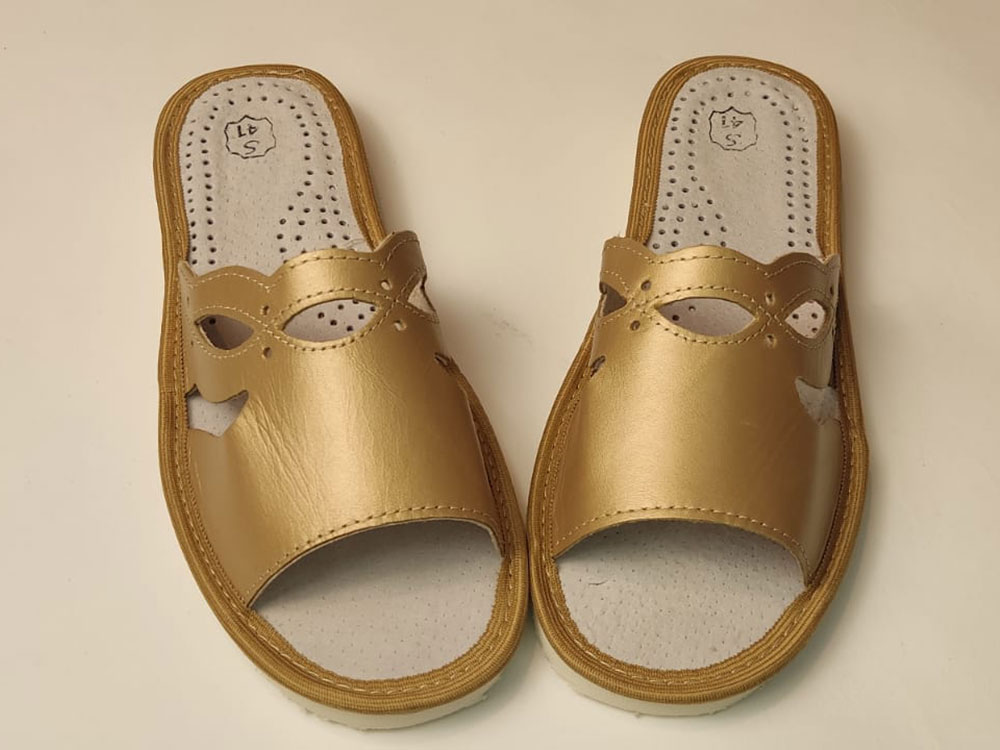 Pantofle Damskie – Kapcie Złote z Ozdobami