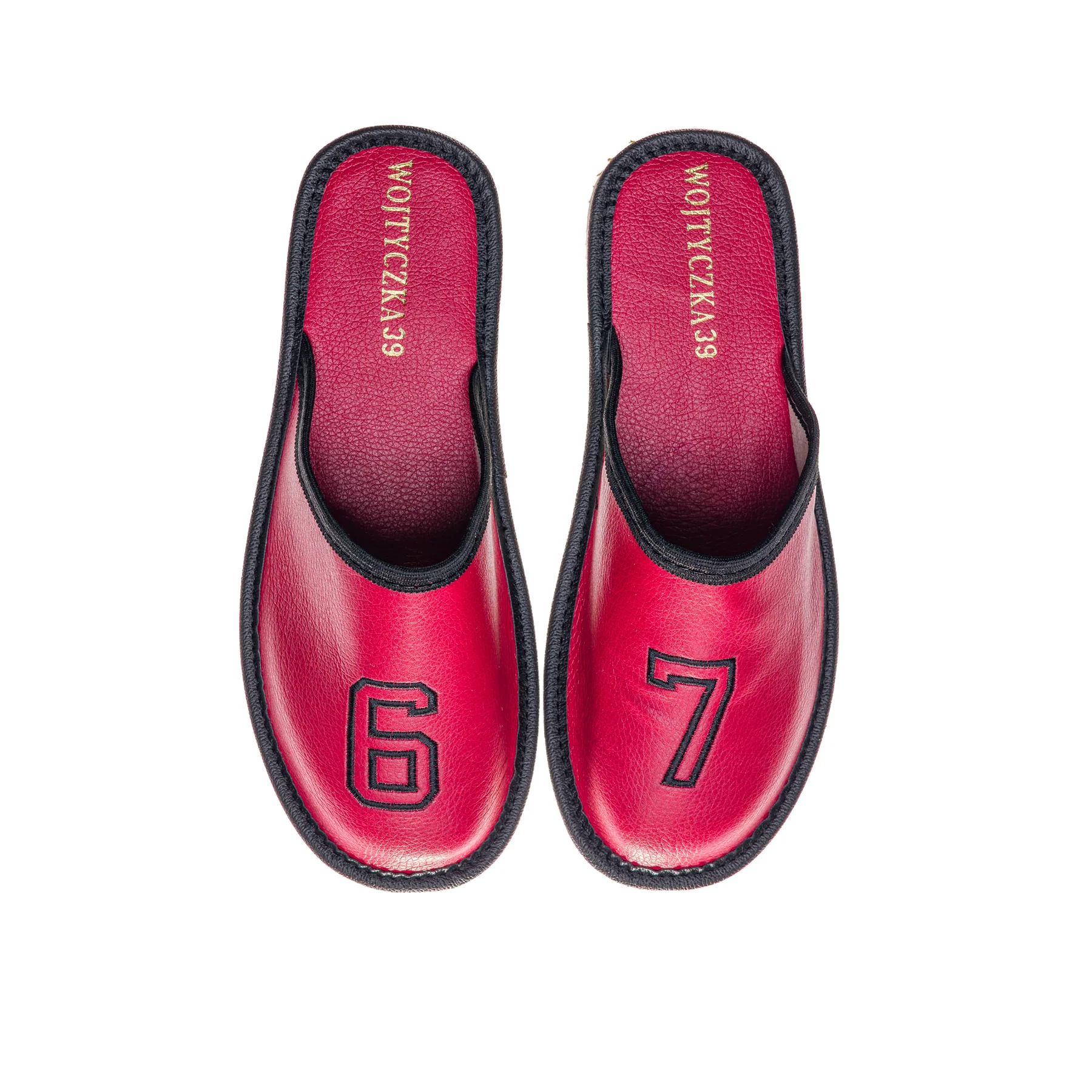 Pantofle młodzieżowe w intensywnym różu z czarnym lamowaniem to model, który od razu buduje charakter stylizacji domowej. Zabudowany fason lepiej osłania stopę, a wyrazisty numer 67 nadaje całości nowoczesny, lekko memiczny sznyt, ale bez przesady. To nadal przede wszystkim wygodne kapcie domowe, które mają dobrze wyglądać i jeszcze lepiej sprawdzać się na co dzień.